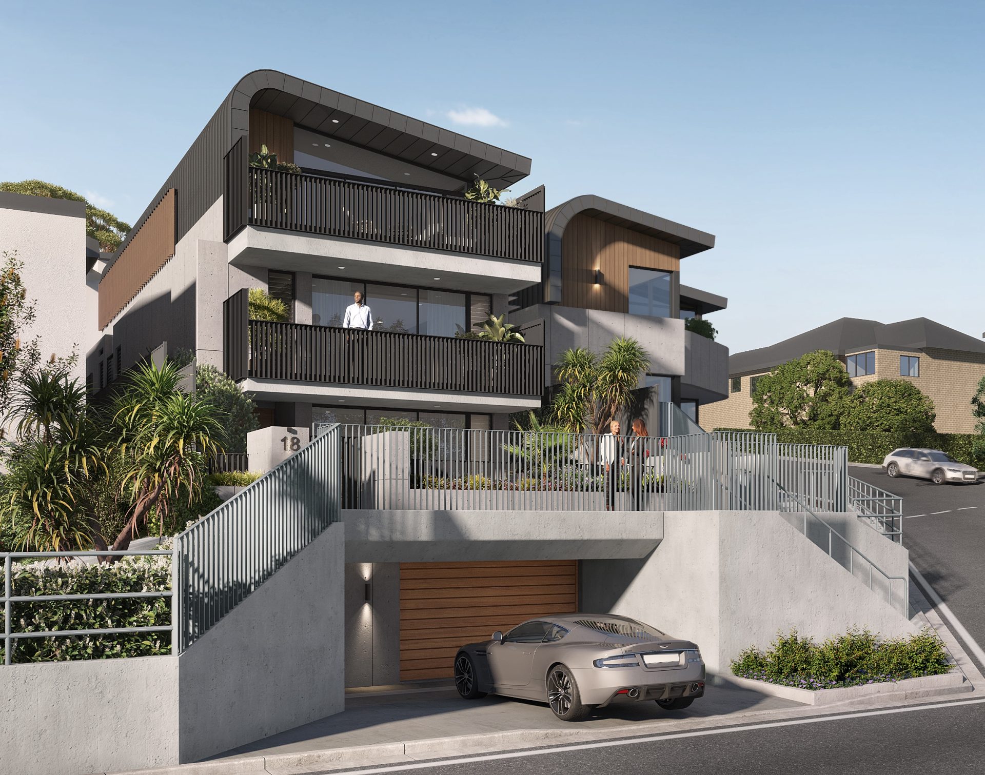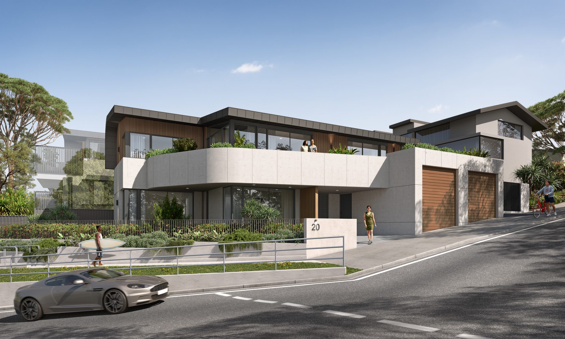 Built by Rose Construction, these dual residences at 18–20 Surfside Avenue capture the relaxed elegance of Clovelly living. Soft concrete curves, timber detailing and expansive glazing create a timeless balance of strength and warmth, framing views toward the coastline.
